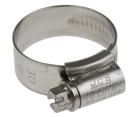 HI-GRIP Stainless Steel Slotted Hex Worm Drive, 13mm Band Width, 22 → 30mm ID