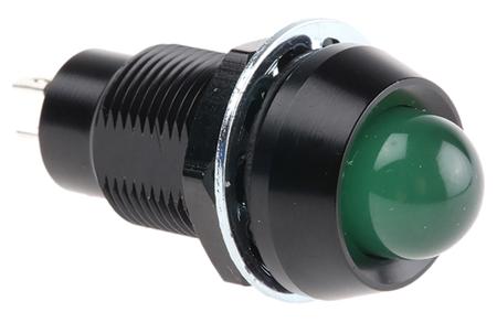 Marl Green Panel Mount Indicator, 230V ac, 12.7mm Mounting Hole Size, Solder Tab Termination, IP67