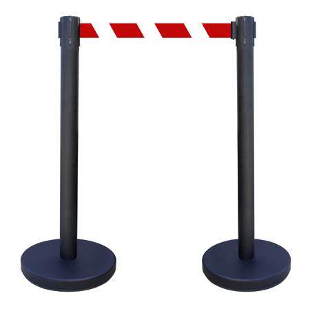 Viso Black Steel Retractable Barrier, 2m, Red, White Tape