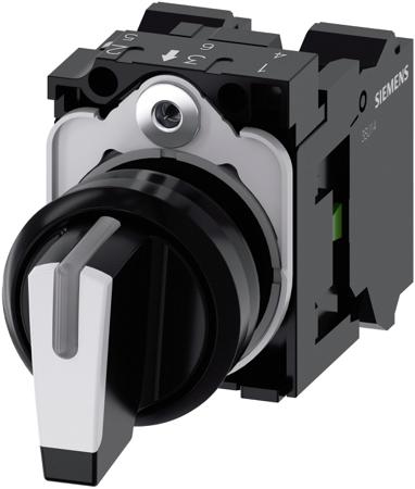 Siemens Short Black Handle Selector Switch - (SPDT) 22mm Cutout Diameter, Illuminated 3 Positions