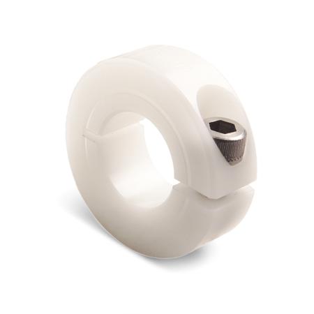 Ruland Shaft Collar, One Piece, Clamp Screw, Bore 25mm, OD 45mm, W 15mm, Plastic